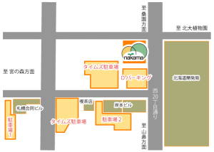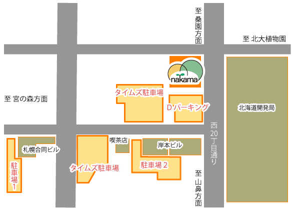 札幌合同ビル敷地内、No.10~13「なかまの杜」看板がある区画をご利用いただけます。